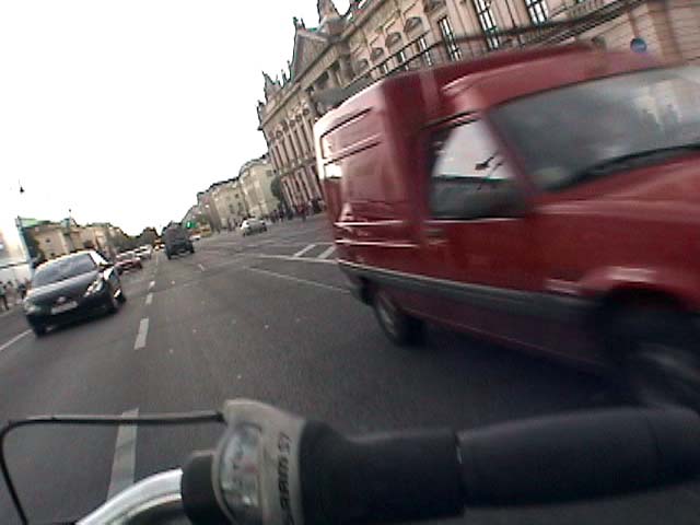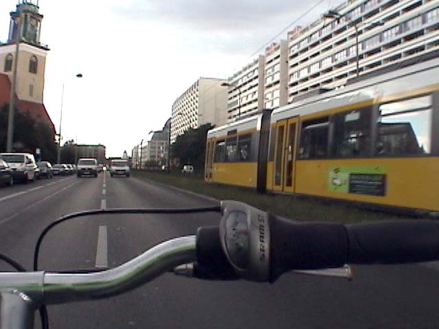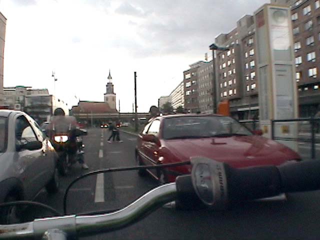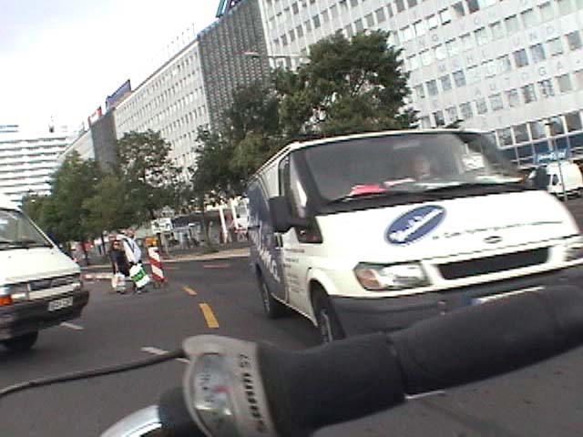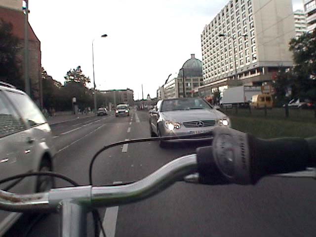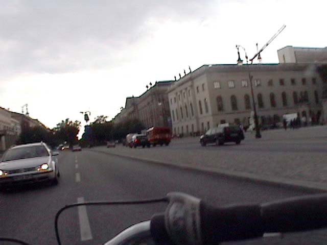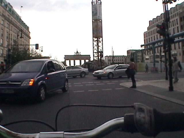 Bicycling from Karl-Marx-Allee through the Brandenburger Gate - Meditating Berlin 1989, 2007 again, against traffic without holding the handlebar, on a shitty bike. don't ask questions why i do this - I have no answers. I survived it.. Police didn't get me... I was lucky..! PS: From arepressive state that was supposed to be inspired by Marx against the grain, against rules and laws, against the flow and walls,towards the WEST. 13 min.