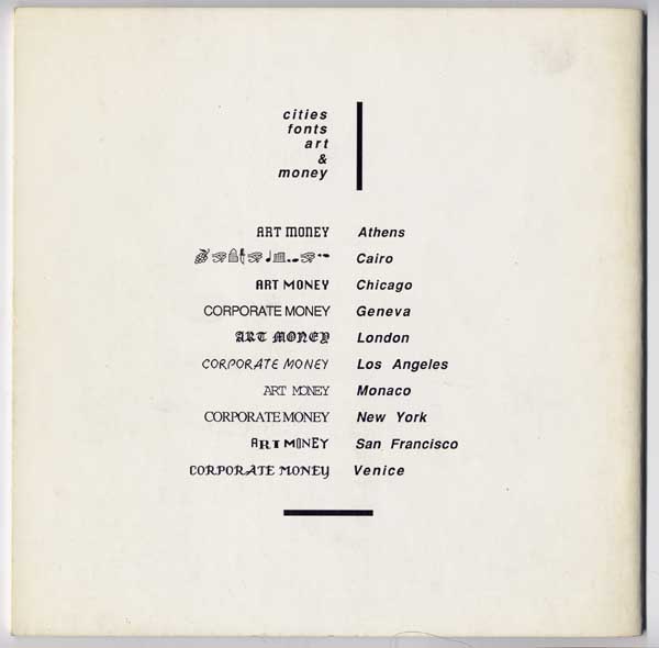 exhibition folder, Rainer Ganahl, 1991 Dallas Museum of Art, Dallas, order from Dallas Museum of Art. find on line. with Text by Ann Rorimer (no title) 1991 see her text and hte inside of hte folder with juxtaposed graphics of hte exhbition: see exhibtion