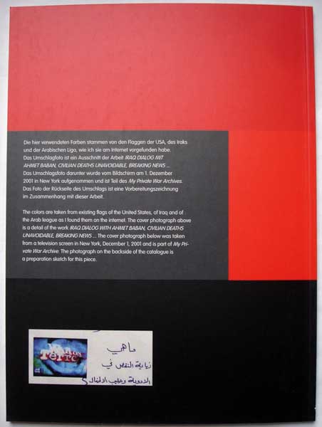 Rainer Ganahl, Road to War, 2005 - 240 pages Published by MUMOK (Museum of Modern Art Vienna), and Verlag der Buchhandlung Walther König, Cologne with texts by Edelbert Köb, Rainer Ganahl, Francesco Manacorda and Paul Mattick - see table of content above see exhibition: you can order this book by Buchhandlung Walther König _ on line: or by D.A.P New York, Tel: 212-6271999 fax: 212-6279484 ISBN: 3-88375-959-7