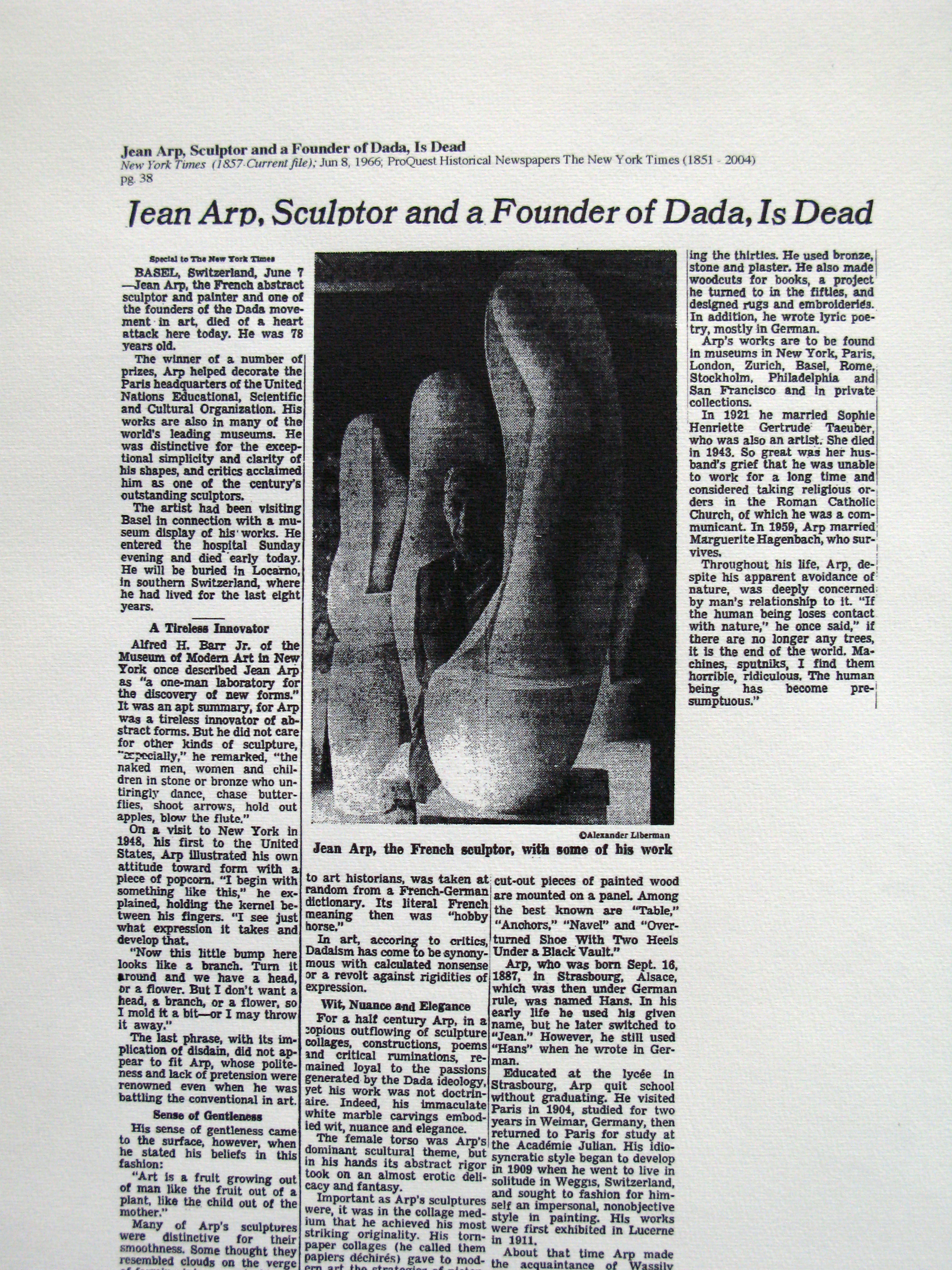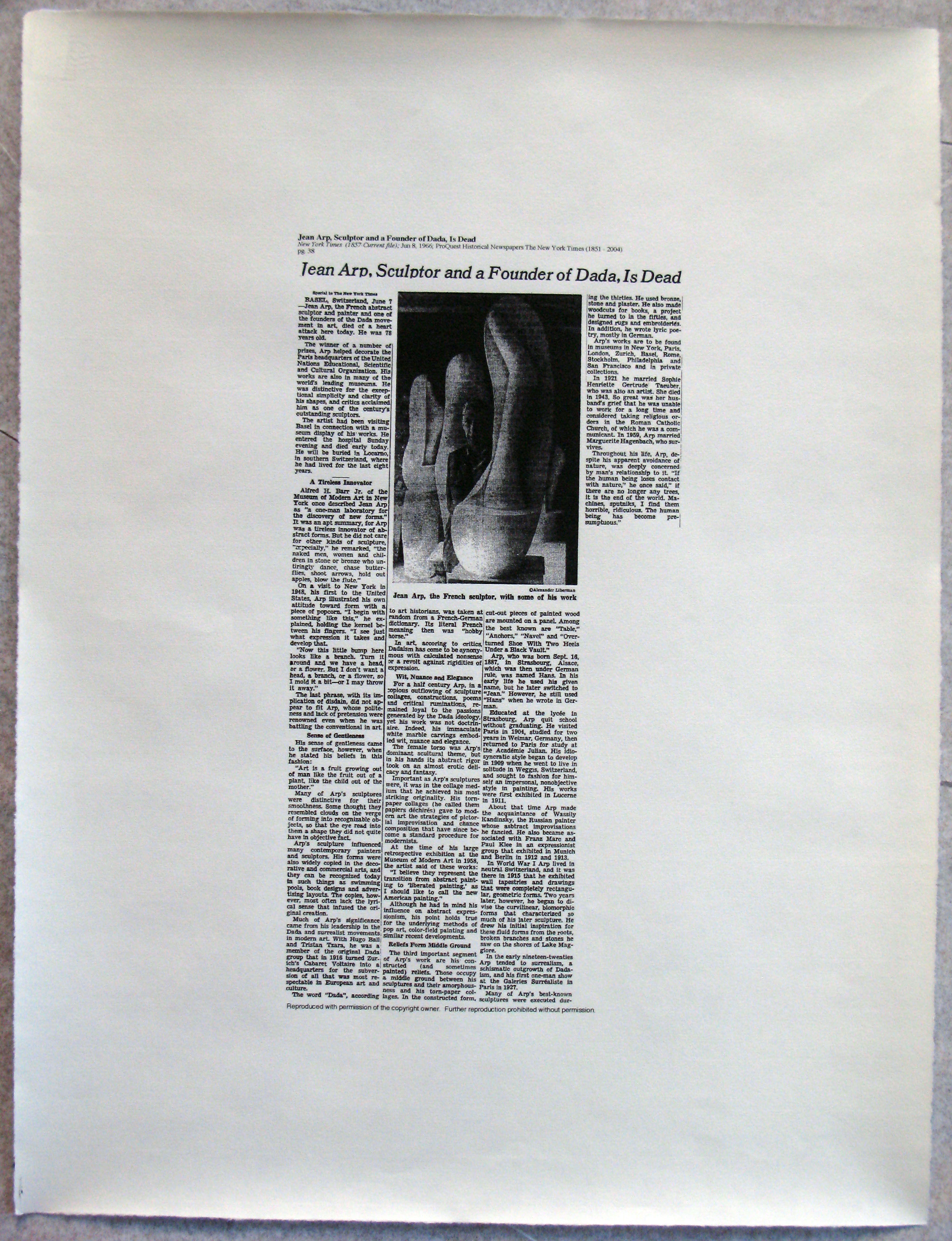 DADALENIN NY TIMES DADADEATH, Jean Arp, 1966, 2008 ink jet print on paper, 64 x 48.5 cm / 25 1/4" x 19 1/8 inches