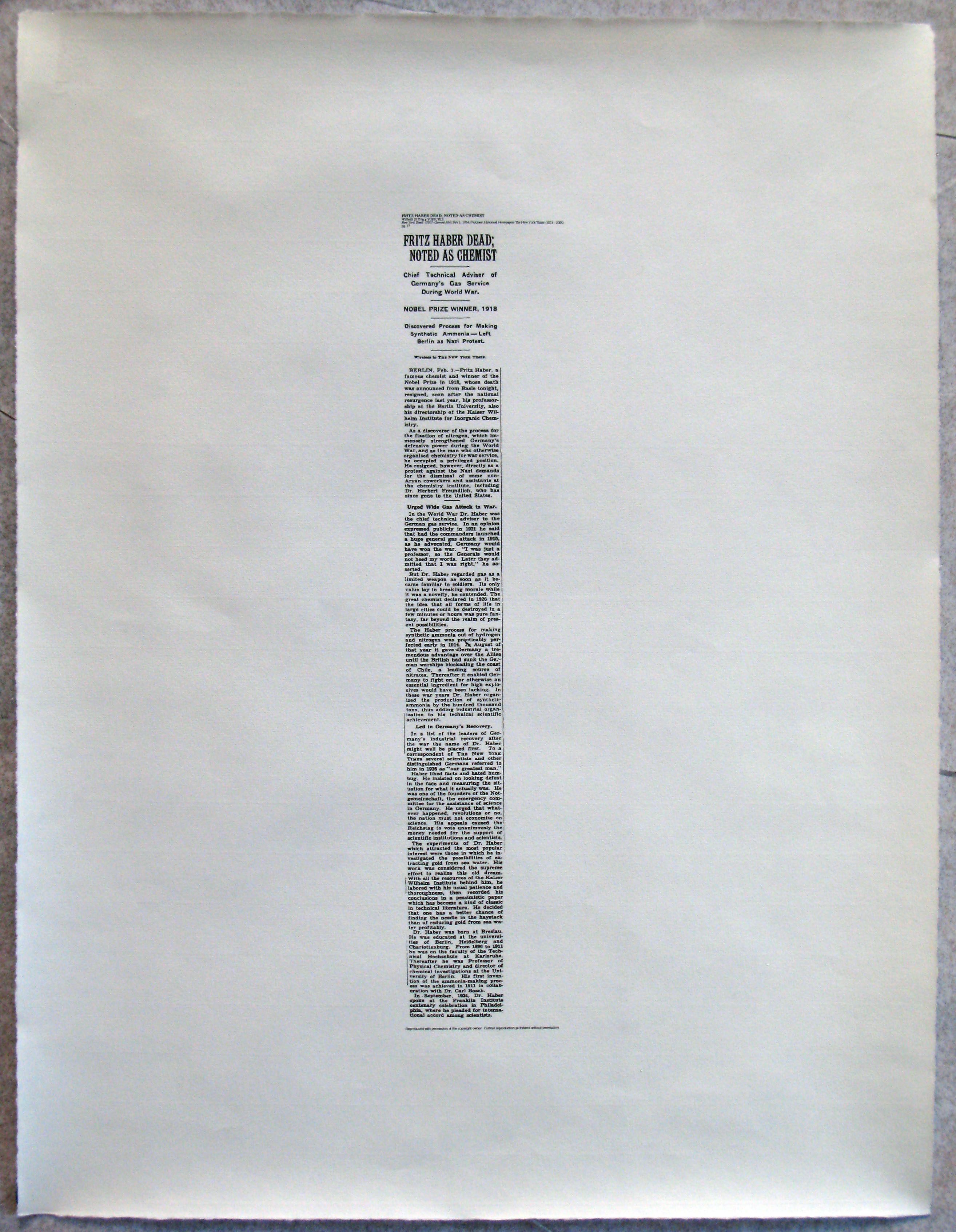 DADALENIN NY TIMES DADADEATH, Fritz Haber, 1934, 2008 ink jet print on paper, 64 x 48.5 cm / 25 1/4" x 19 1/8 inches