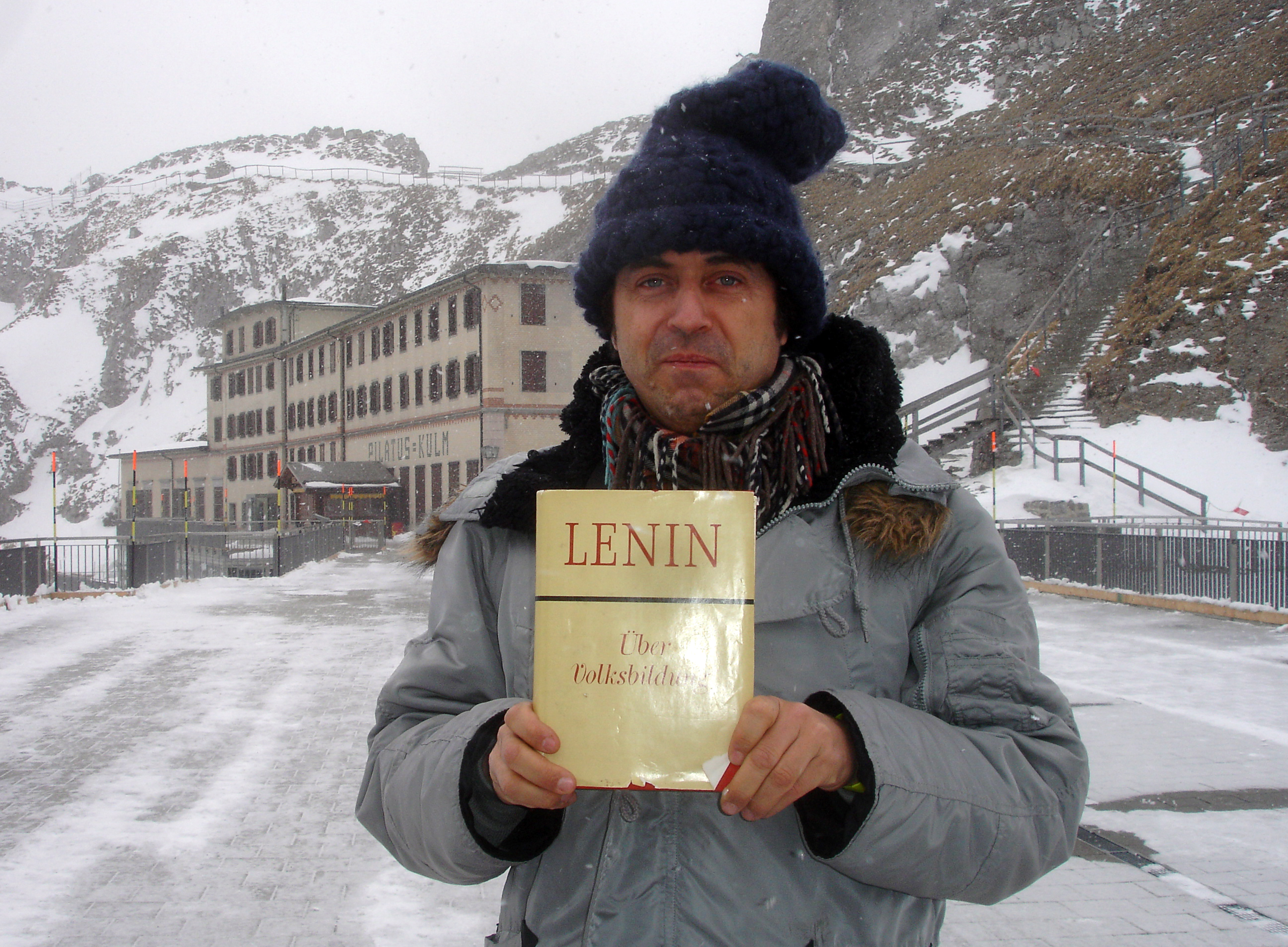 V. I. Lenin, Collected Works, (Russian Edition) 1962, 2007 5 min. video In the European and Russian tradition of book destructions, I am kicking a Russian edition of Lenins collected works accross the Red Square towards the Lenin Mausoleuml, where he still is for view almost daily until 1 pm. This work landed me in the hand and then in the car of the police. I was accused of Holigansim, an accusation that was "forgiven" after a payment of about 150 dollars - so to say, my most expensive taxi ride in Moscow.