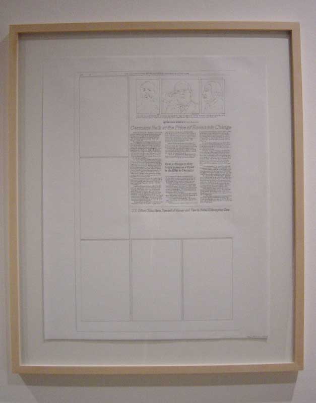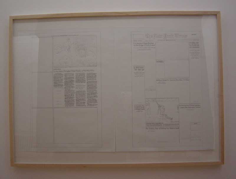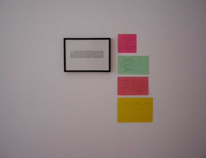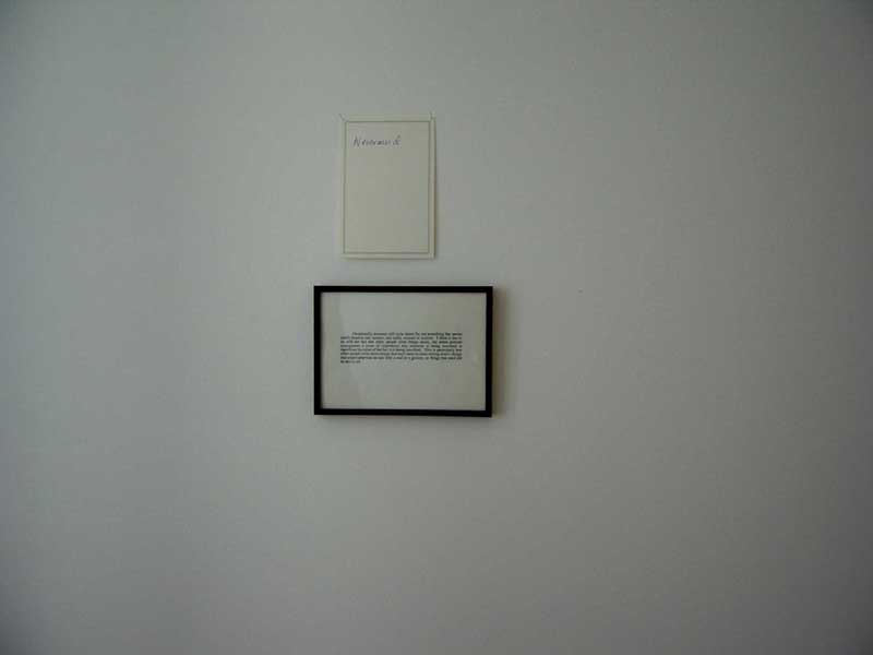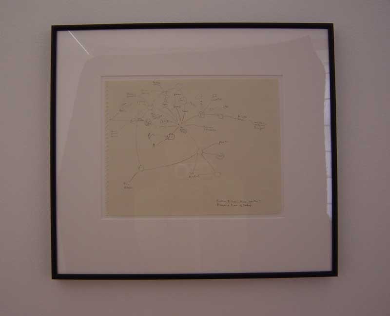 installation view Rainer Ganahl, (floor piece) Mark Lombardi, and Joseph Grigely