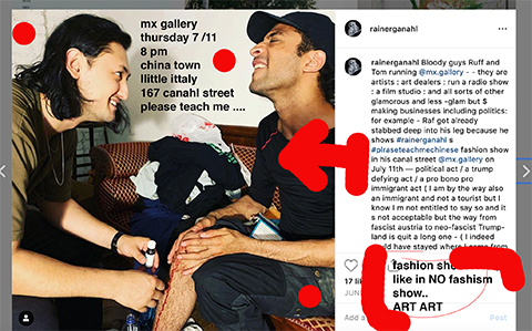 Editors’ Picks: 20 Things Not to Miss in New York’s Art World This WeekYour to-do list for the week. Sarah Cascone, July 8, 2019 9. Rainer Ganahl’s “Please, Teach Me Chinese / Please, Teach Me Italian — Marx a Prato / Gucci a Prato” at MX Gallery Artist Rainer Ganahl updates his “Commes des Marxists” fashion show, which first appeared at White Columns in 2013, at lower Manhattan’s MX Gallery. The fashion performance, which features clothing printed with Chinese and Italian text, was originally slated to appear in the Italian city of Prato, which is home to a large population of migrant Chinese workers. But museum officials interrupted the show after discovering that Ganahl’s work highlighted the sometimes violent clashes between the city’s Chinese and Italian populations. Now, Ganahl is reprising the work for one night at a gallery that’s fittingly situated in a part of Chinatown that was previously known as Little Italy. refernces: kunsthalle vienna / prato / concept