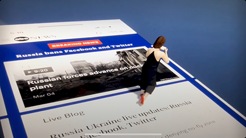 a late january 2020 example of a news painting... Trump backs away from miilitary action plus a saga in Corporate excellence and failure. click to see this oil painting