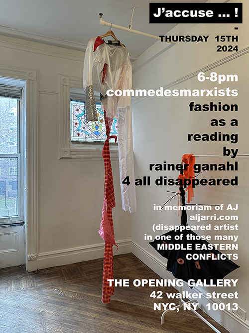 the same gallery gave me two performances in 2023 a show with fashion items on ANTI SEMITISM ....