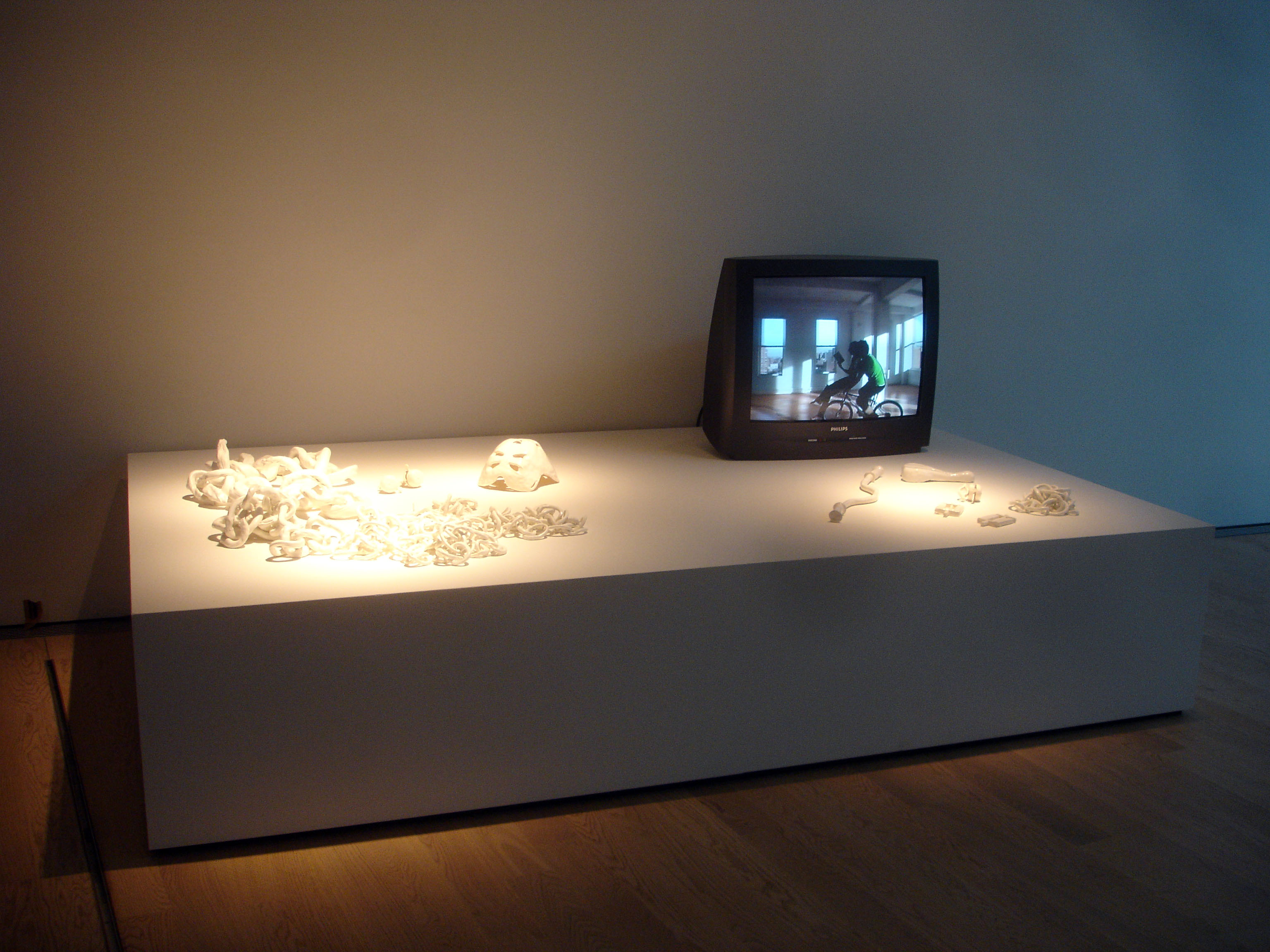 installation view wiht Bike Helmet, chains and "handlebar" video - see below ,2006/7 click image for hi res picture