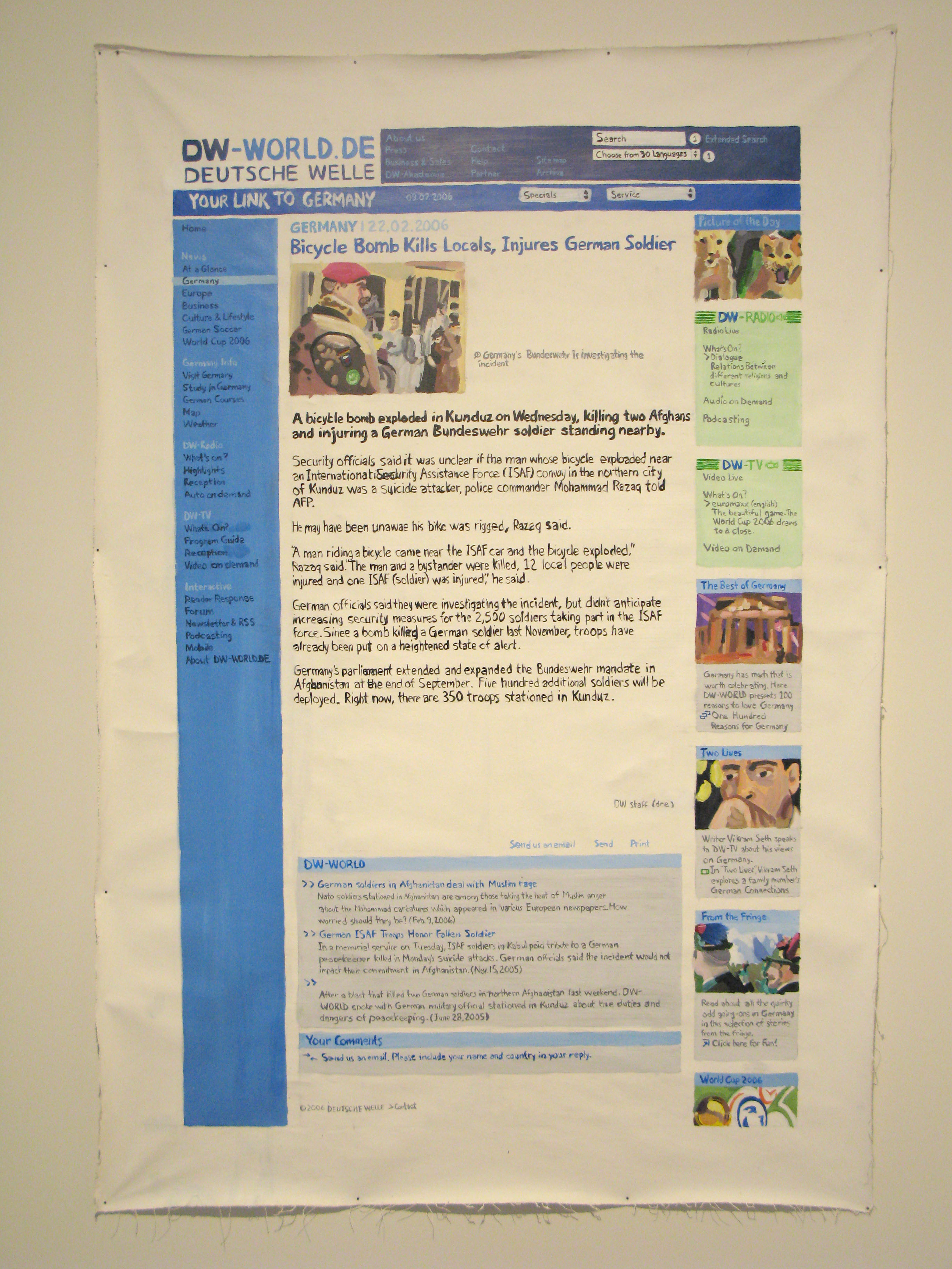 Newspainting, Deutsche Welle, Bicycle Bomb Kills Locals, Injures German Soldier, 2/22/2006, 2006 acrylic paint on canvas, 220 cm x 180 cm