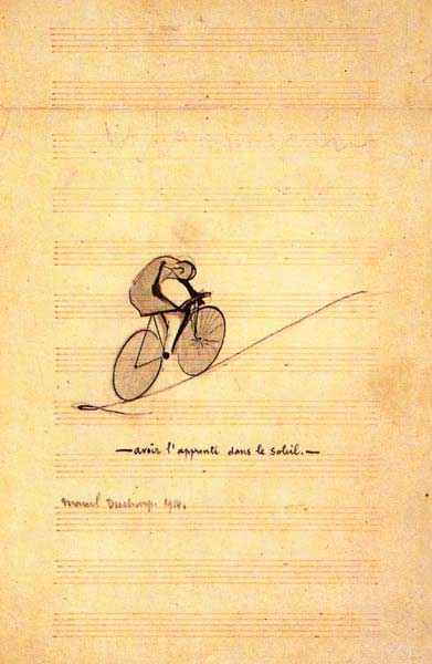reference: Marcel Duchamp, Avoir l'apprenti dans le soleil - Having the apprentice in the sun, 1914 drawing - a study for the "glass"