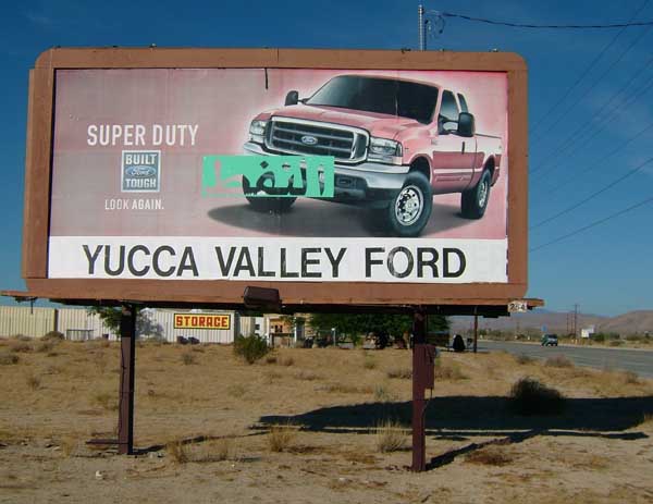 my contribution was the 'vandalization' of a bill board for a local Ford dealership: I simply applied a green venyl letter sign with the Arabic word "Naft" = OIL