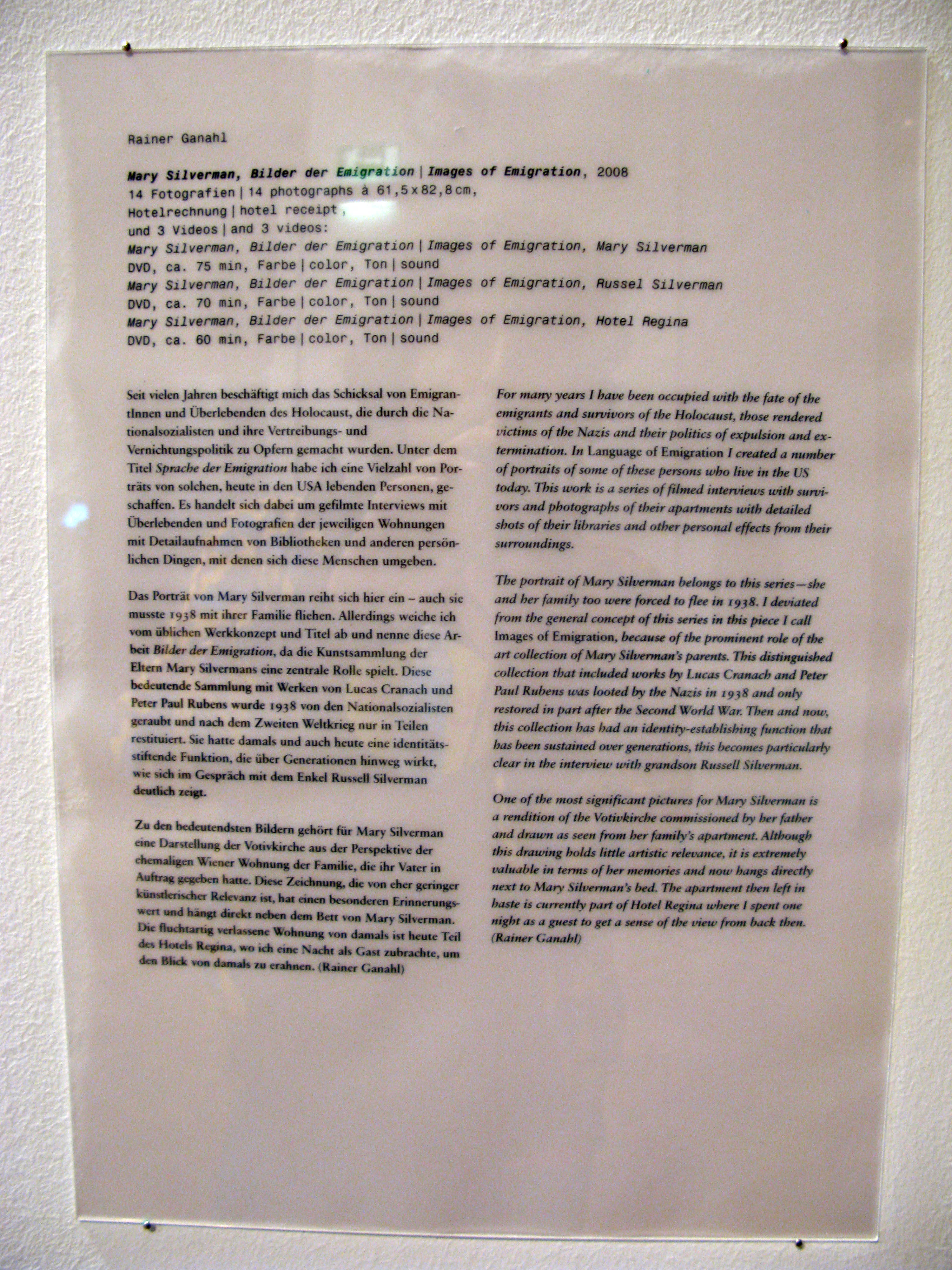 for RESTITUTION, LOOTED ART AND RESTITUTION, MAK, VIENNA 2008 (curated by Alexandra Reininghaus) see images below:s