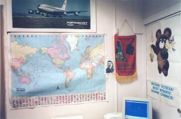Rudi Gurtin, my travel agent, a Stalinist in New York in the Year 2000, New York 2000, 2000 (2 photographs, 30 x 40 inches, video 62 min Baumgartner Gallery, New York For this piece, I photographed and interviewed my travel agent who tells a conflicting but intriguing life story about him being a Stalinist. Historical facts he rejects as "American propaganda". He himself and his family have been victimized by the very system he continues to promote. Born before the war in Eastern Euorpe to a Jewish Russian family he was put into a Nazi Concentration Camp for several years, grew up under Stalin and emigrated to Israel in 1977. He moved to New York in 1981 where he still is working as a travel agent. His tiny office in Manhatten is covered with Soviet nostalgia including a series of pictures of Stalin. | |||||||||||||||