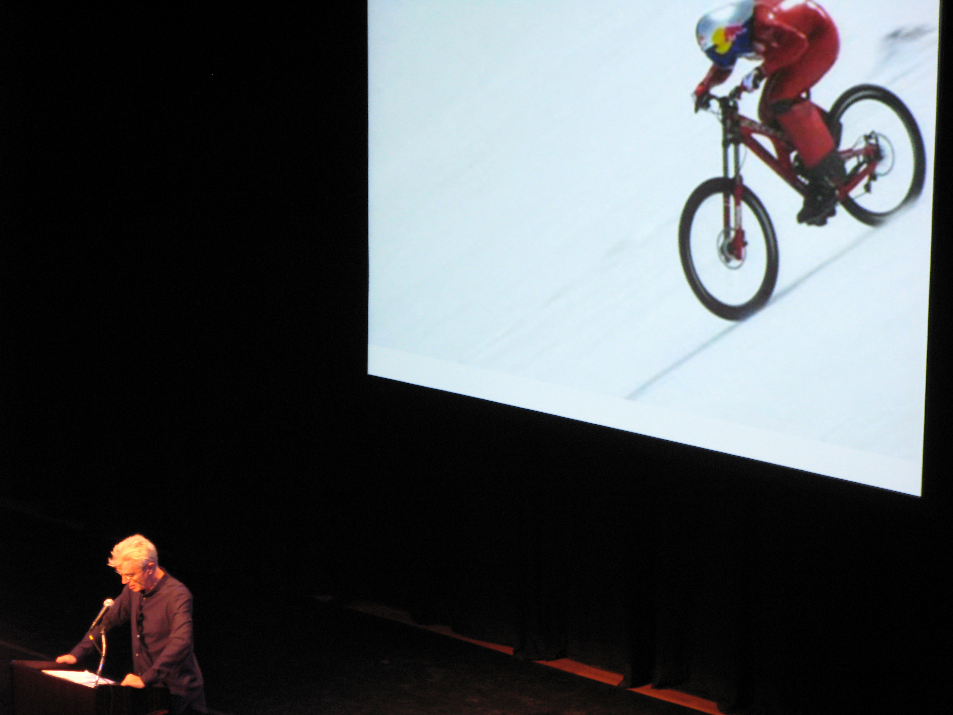 Seminar/Lecture, David Byrne, How New Yorkers Ride Bikes, An evening of music, discussion, film, readings, and surprises dedicated to the advancement of bicycling in New York City, Town Hall, New York, 10/6/2007 4 photographs, 20 x 24 inches (51 x 61 cm)