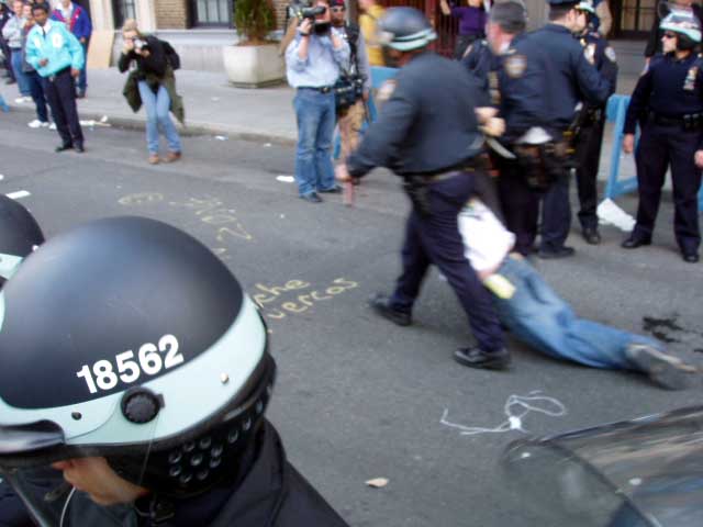 the standoff with the police started as a sit in: it ended in 91 arrests and some mace sprayed against the police.