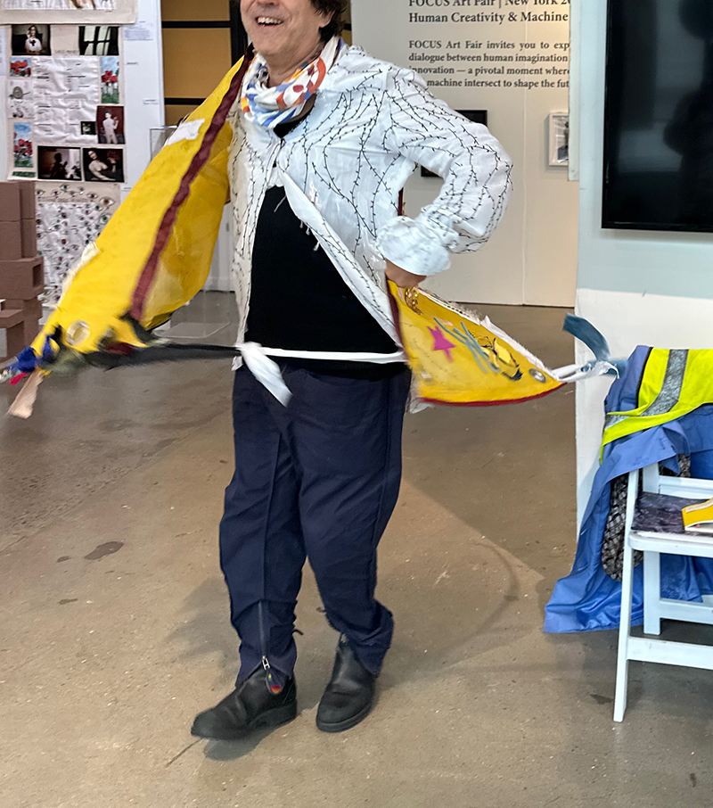 index ------- (page currently under construction as the fair only closed May 18, 2025) Chelsea ART FAIR FOCUS, WITH THE OPENING GALLERY, New York 2025 -- the one person show I hads last year 2024 in Tribecca art in time of "executtive oders" trying to be above the law - below the radar - thanks May 19th 2025. The works below are not meant to be arrogant or STUPORISIZE the visitor or the beholder but rather comment on my own life - my own difficultires to hand x-thousand images I take nearly everyday to work or to function. We (and sorry I ) am overwhelmed with information overload and then we forget what is essential. Friends, Truth, Justice, and a constant process to imporove ourselves. Due to the overload of archival material we all collect, we miss the point: to be together, to be alive, to not get f.... d over by scams, by promioses that never kept, by aps that sell us anything and by the fact that current politics drives into economics in such a brutal way, that the current leader of the USA suggests that money needs to be saved from those how need it the most to save taxes for the uber-rich. Unfortunately, the last election of Donald Trump has used racism, anti-semitism, sexism, and chauvinisim, anti-asian-sm xenophobia in general *( i am also an immigrant) as a key tool to intimidate and to come up with laws to "save money" that are simply not necessary and have driven us into an economic hard situation using FEAR, ANTI-SEMITISM, ANTI_ISLAMOPHOBIA, ANTI-FFREEDOM OF SPEECH and finally CHAUVINSIM in such a dramatic way that we are all hurt, that we are all scared of each other, that we are all isolated and fear anything could be used against us. I am very happy that OPENING GALLERYgave me this chance to effectuate here my "PLEASE, TEACH ME CHIINESE" performance and thus interact with the public through various FASHION AS ART commedesmarxists outfits that playfully let me interact with the public. This art fair took place in Chelse and hence profited from the richest people in the world who live in the vicinity. The Fair Itself is a new start up ... and has Asian American *mostly Korean sponsors and exhibitors - hence, it was not directly competing with FRIEZE and the INDEPENDENT directly but wishes to do so. Hence, the fair came a week after the big fair and I didn"t noticed it advertized in big ways. It was rather like the idea of COMMEDESMARXISTS self-contained, on survivor modus, and the the majority of exhibitors were aritsts. I am so so happy that THE OPENING GALLERY had such a prominent booth, A1, and i was able to basically greet the people and surprise them. I am very thankful to the founder and art historian who constantly underlines that fact that she is not an art delar ---- * i contradict her .... because her commet is raising and I am proud to be part of it. Also we know each other for so long and inform each other about life without blue chiip income when nobody is risking anything anymore. I have noticed on Frieze, or ART BASEL the enormous PR activites that go on and hence partially MIMIK their very expensive campaigns. Also FOCUS had many smaller venues that were commerical start ups. The topic was digital life and hence, I decided to reflect in my way this conditons. I am mostly self-taught when it comes to FOREIGN lLANGUAGE LEARNING. I have represented Austria in the Venice Biennial in 1999 and addresses the politics of LANGUAGES in telatisonship to the economic and global politcal power of nation - national languages - and military hegemony. Needless to say, the question for me is to what degree is DEMOCRACY AND TRANSPARENCY IMPORTANT ? I AM ON THE DEMOCRATIC SIDE and basically pretended to use dark humor and slap stick technics to "cutify" or self-inferiorate myself to make a point. The charm of that fair was that it s as if