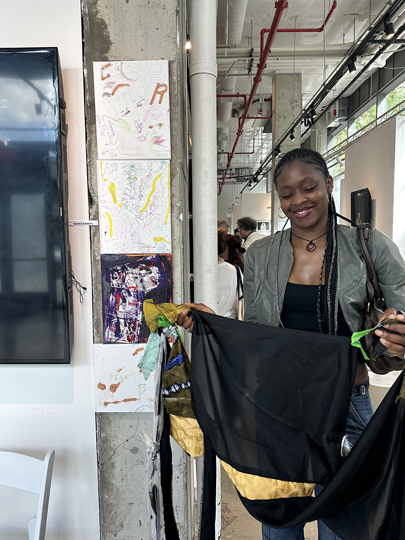 image this vertical assembly to be a narrative - and the rest of the rather NON PRECISION WORK my way, the artist's way to breath .... I am not condemming anybody who works like me day in and day out on a screen and in isolation ... relatively speaking ... simply waiting and observing time. TIME AND CONVERSATIONS ARE FOR ME CULTURAL CAPITAL that I try to capture and "steal from the beholder. Hence.by introducing a foreign langauge, i hope i made cleasr that I am for a global world that is open and works collectively to share it's recsources. Needless to say, as an artist and in my position I have a feeling I have landed too many times on some glue pat and hence., let me apply the word stupor also to me... Hence, having seen too many ups and busts in my life, economics, personal and political ones .... I sp enjoyed to participate in a super high, super gentrified area that make you really wonder, was Hegel on Haiti right, or was Kant on peace wrong but my time keeps refering me over and over to the very beginnings. Hence, thanks for reading this, thanks the amazing gallerist Soziete Gouduna and her Gallery that is currently operating like an INTERVENTIONIST. Thanks to all the people who posed for me and who engaged with me and played with the complicaed outfits I was tailoring during a time people usually sleep. I recycle ideas, memories, conversations and live as much as I can in the future interwoven wiht the past that my presenece is keeping me skinny and active so that the absence of barely the money needed to pay for my shelter is hidden behind the GALGEN HUMORE I not only performed. Covid is still somehow in the pipelines albeit of the fact that I'd love to be seen in the traditon of my teachers and needless to say the situationists. I cannot totally hide the fact that many visitior didn't know who Gerhard Richter or Nam June Paik was (the later gave me my master in fine art from the art academy Duesseldorf where my friends dragged me quite a bit along to the critical verdicts of Richter, who acted rather like a greek emperor with finger up or down (he simply stood there and said notrhing and walked away) without really much comments - I adored and disliked the fear that he emanated and understood already then that authority can be overwhelming but should never break you... unfortunately, I have seen people who got stuck there in the mud of higher beings and hence... moved on the way I have always moved on - with or without monitary success. Money and dead cat bounced is about as photorealisitc as it gets. And yet, there is always more to be said, or nothing to be understood. The art of plently is in my case the noise that re-iterates the difference between aporia and surviving. But the most and unrenumerable success of this show was that I have walked away with so much humanity that was shared and be it only as if a boy who got lost on a central railway station staring at people he simply can"t understand albeit of the fact that we all survived covid and will make it throught htis current economic crisis. Interesting enough, working wiht COMMEDESMARXISTS = HENCE FASHION AS FINE ART - allows me to learn, the play with our fetishistic desires to please, and the fact that very few of us can really understand that HAUT COUTURE is what I make but without anyboy taking me seriously. Thus I am happy that have only the camera and social meida on my side. Luck had it, that when I handed a professional camera with a good old Leica lense to a good old friend - no mentioning of the name - the tale bounced from the floor and thing camera bounved on concrete like a piece of pizza. Pizza gate keeping was my way to lose weight - I starved myself by getting exited with each interaction. I do categoricallhy not distinguish between all the myriads of ways of being. I so respect each person's appearance and was amazed how we are all struggeling... being poor or rich, old or young, babies or dogs, and cats. I enjoyed the little food fights we had and the little picutres fight that is always a realithy. But all people how allowed me to be on picutres are here thanked in a way that gives me more ideas... I consider the ananomous format the most democratic format and yet - I have to be so careful with images as I do not desire to give anybody the impression that my ludic characgter is antagonzing or provocative. THE PRESENT AND THE PAST AND THE FUTURE IS OWNED BY EVERYBODY. my materials are elite and 'recycled' for a sustainable life wihtout waste but also without the dictatorship of austarity ... so soavings costs more lives and cresate more victims of wars... last but the least ... the global wars and potential antagnistm between super and micropowers is really drugging on the short temperdness of people and i find it sad to overserve stress in the lives of poeple including my own. i have to stop myself and not write forever.