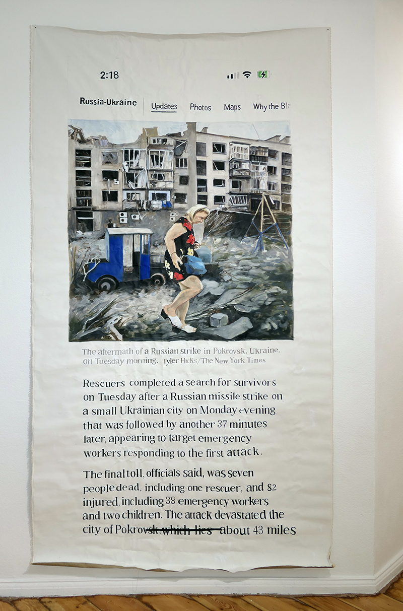 below: newspainting, The New York Times, Russia-Urkaine, The aftermath of a Russian strike in Podrovsk, 2023