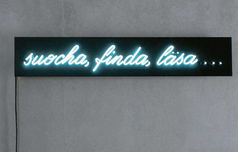 luoga, losna, reda ... (to look, to listen, to speak ... ) mixed media with neon, 25 x 135 x12 cm