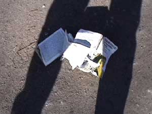 The Ego and the Id, 2002 video,6 min, destroyed book kicked towards a corporate tower in midtown New York.