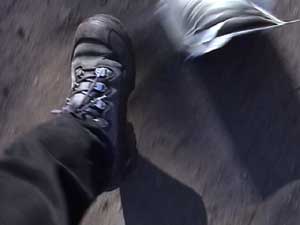 The Ego and the Id, 2002 video,6 min, destroyed book kicked towards a corporate tower in midtown New York. video: extract: see above