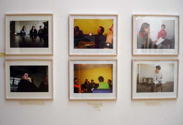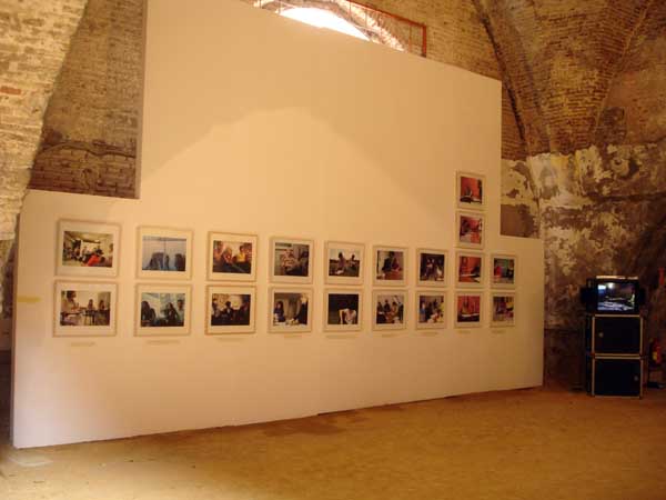 Installation view, second wall, with monitor showing 5 min excerpts of all the scessions: 90 min