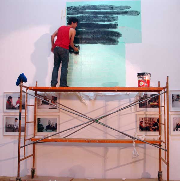 Downlaoding "Frantz Fanon European suburbs" on Google.com", 2006 Installation performance during the opening: 7 HOURS (remember the old days, when images took hours to download from the internet)