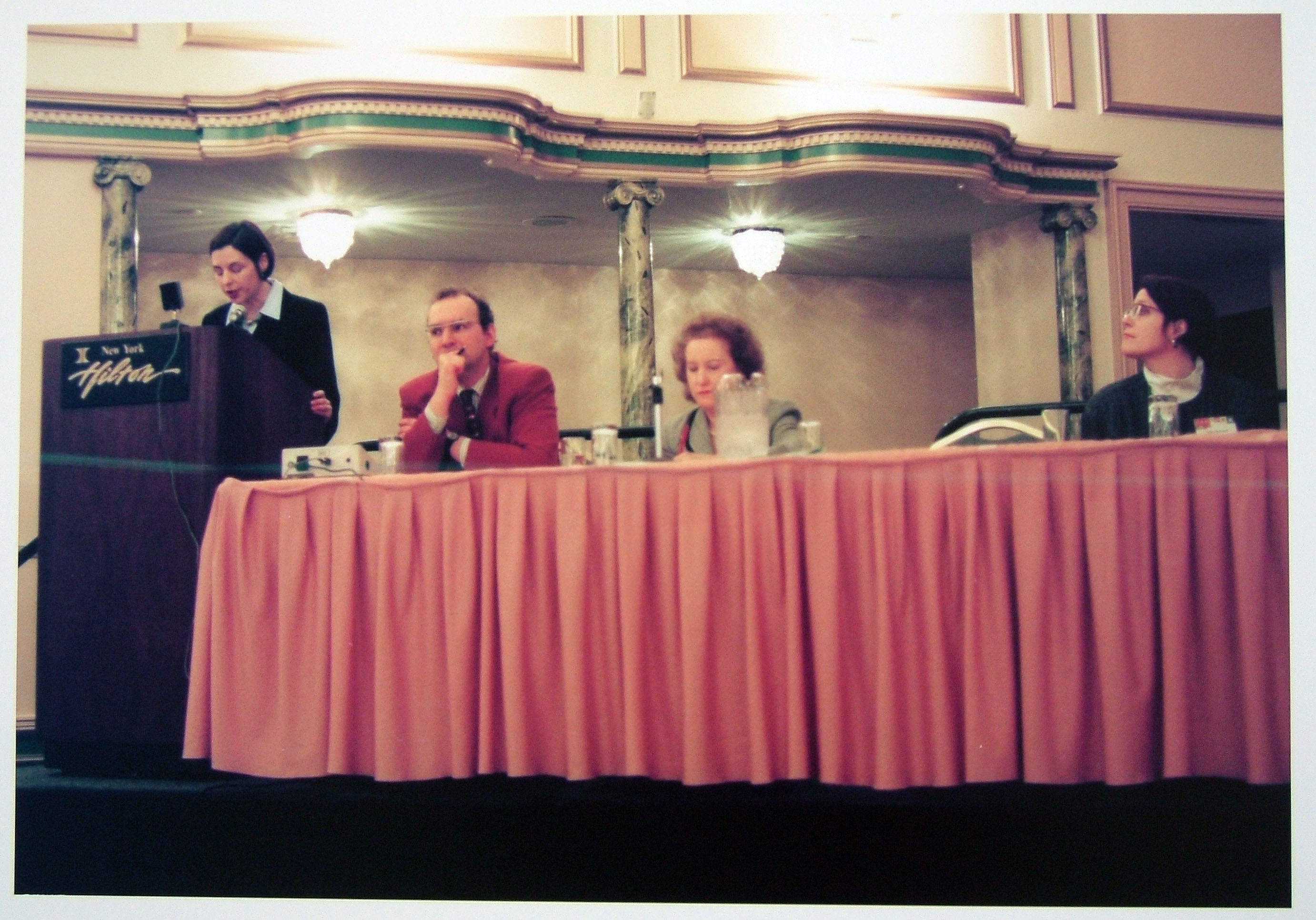 Seminar/Lecture, Stefan Germer, Julia Bernard, Marion Deshmukh, Robin Reisenfeld, Peter J. Schneemann, John Miller, Benjamin H. D. Buchloh, Postwar Identities' Reflective/Projective Definition: America and Germany in Artistic Interaction, 1945 - 89, CAA 85th Annual Conference, Hilton Hotel, New York, 2/15/1997 20 x 24 inches, edition of 4