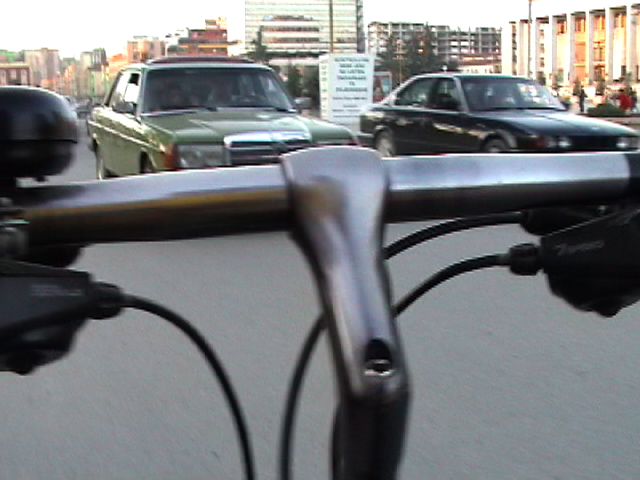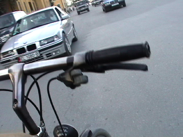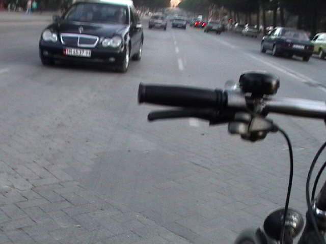 Today, 10/23/03, I just had this dream about me bicycling against a crowd of Trachten wearing people. Trachten are the traditional European clothes, associated with traditionalism, 'good old times' and right wing politics. (I m not saying that everybody who wears these clothes does have a right wing agents but many might and do, as do others in contemporary outfits). The last time, I saw a chorus was in Modena for the opening of a group show where Maria Papandropulous invited an Italian chorus - dressed in traditional clothes, lined up in some formation - for some presentation. I really despised the fact that the artist instrumentalized these singers and put them into an uneasy situation where they had to sing songs for a public that basically was making fun of them, that didn't pay any attention, that treated them as if some kind of different species. People stood with the back towards the chorus talking in loud voices while they were singing: "a great piece" .. and other things. I expressed my complaint to Maria. Yesterday, I received an email asking for photographs which I sent to her. She is a great person and we got along very well. In fact I really like her at least as much as I hate this 'conceptual placement'. This might have triggered this dream. During the dream I was bicycling in the same style like in Tirana against the crowds of Trachten wearing lines of people. The police was chasing me and people tried to catch me. Quite a strange nightmare. The bicycle is really - next to the computer and the radio - my most important instrument for 'making it through my life'.